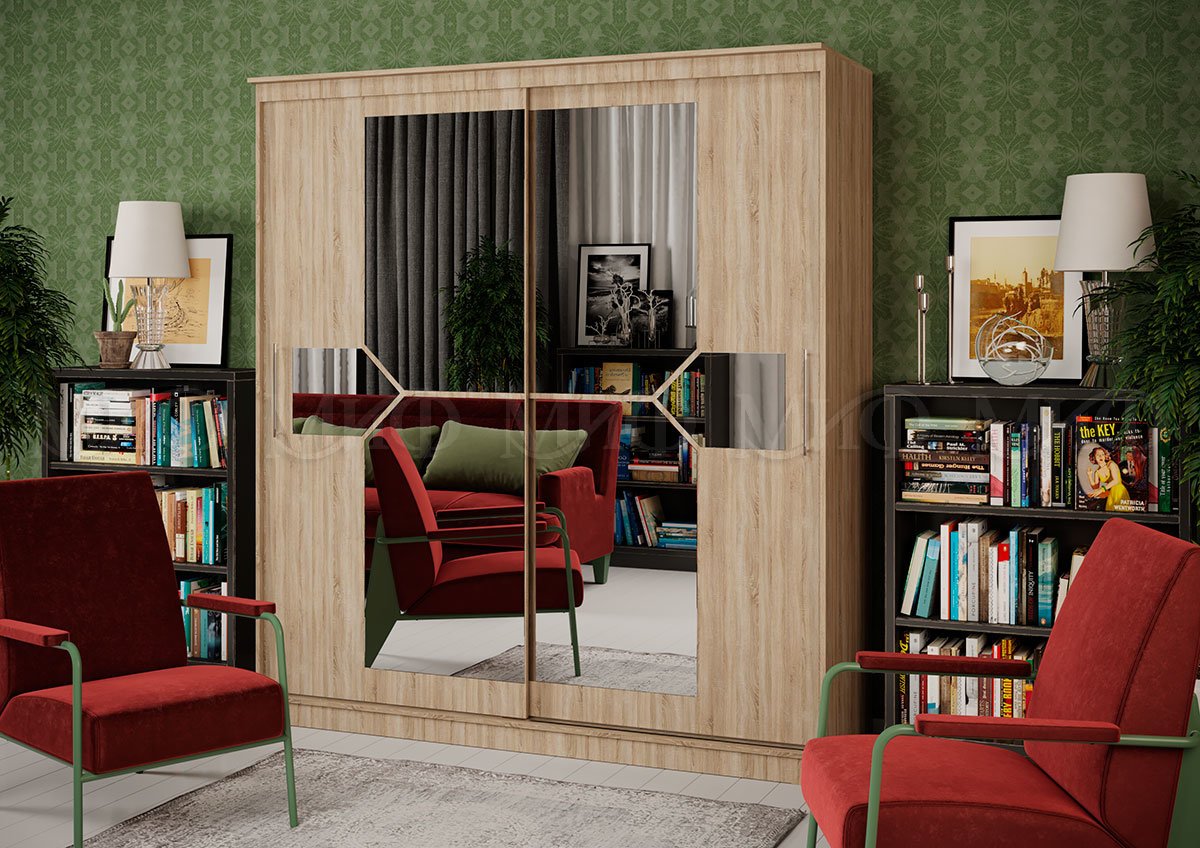 код 102983Широкий двустворчатый шкаф-купе в оригинальном дизайне.