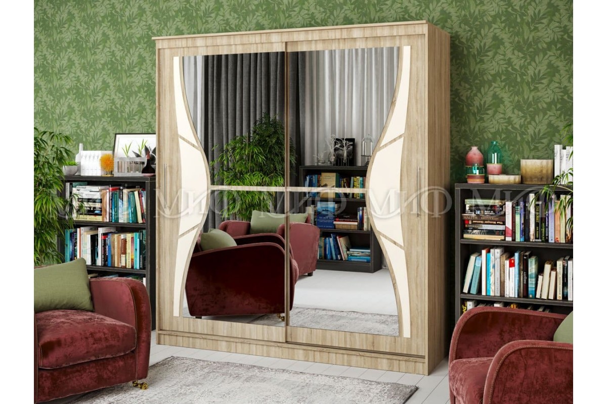 Шкаф-купе «ШК 2100» два зеркала (шимо светлый) профиль алюминий