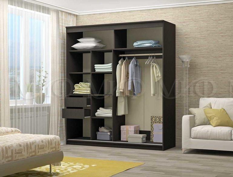 код 111855Шкаф-купе оборудован полками, выдвижными ящиками и штангой.