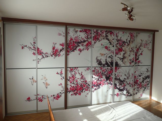 Широкий двустворчатый шкаф-купе в оригинальном дизайне.