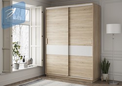 Двухцветный шкаф-купе без зеркал с полками справа. Ширина 152 см.