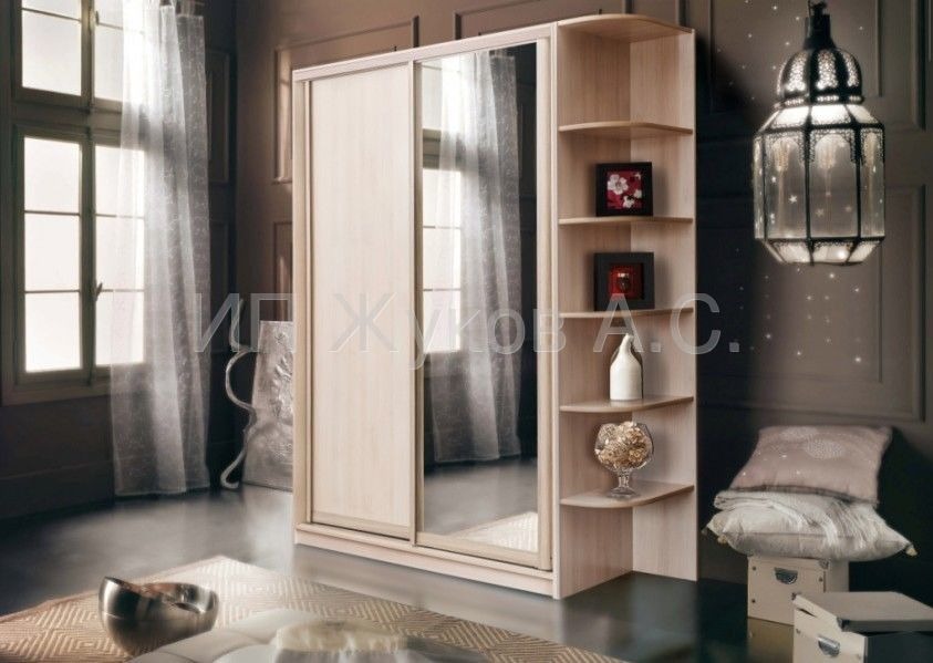 Стильный двухдверный шкаф-купе с боковыми полками — идеальное сочетание практичности и современного дизайна! Эта модель предоставляет универсальное решение для хранения: одна половина шкафа оснащена вместительными полками, а другая предназначена для одежды на вешалках с удобной антресолью для дополнительных вещей.