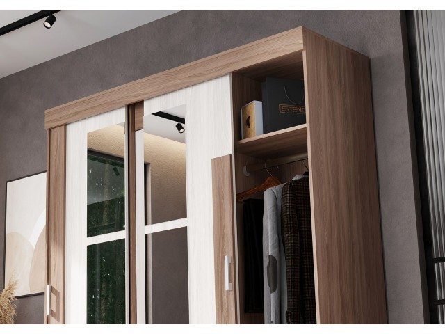код 146654Размер (ШхВхГ): 1598х2100х520 мм. Материал: ЛДСП, зеркало.
