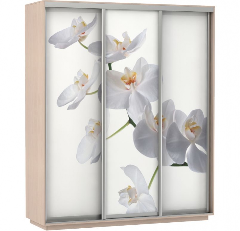 Шкаф-купе «Фото Трио» с печатью Орхидея в цвете дуб