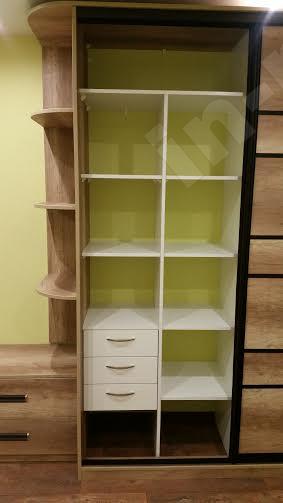 Угловой шкаф-купе с комодом и полками