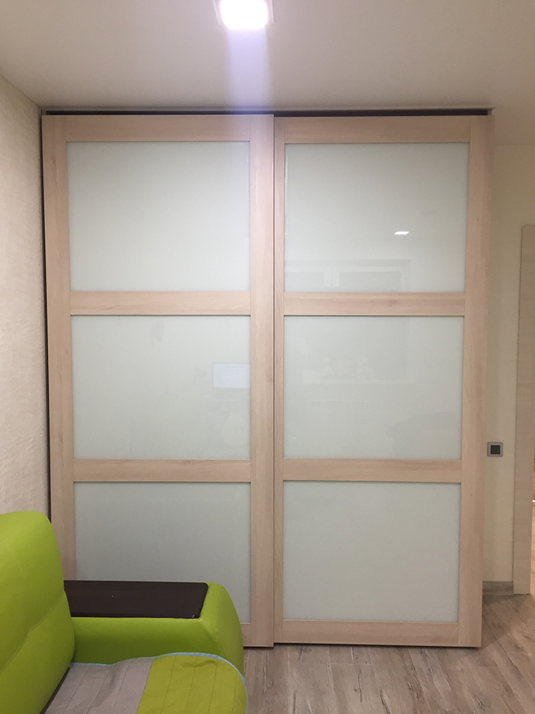 Двери со встроенными ручками. Ширина шкафа 152 см.