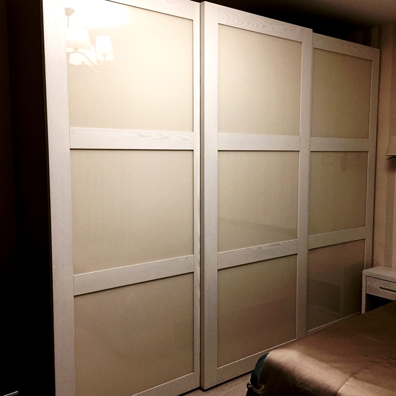 Раздвижные двери с удобными ручками. Ширина шкафа 152 см.