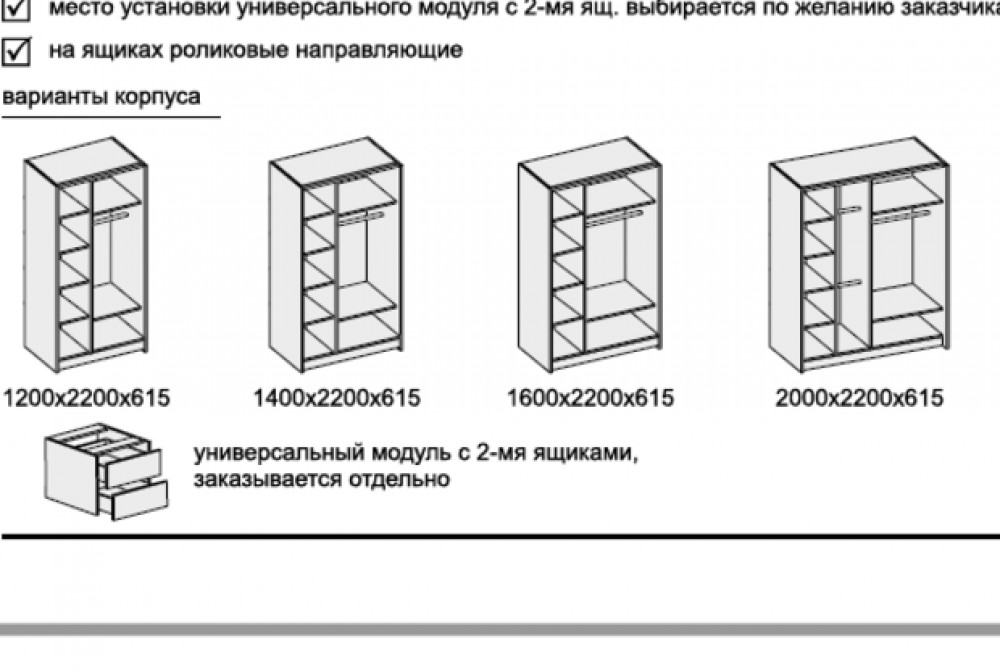 код 119291По желанию заказчика дополняется универсальным модулем с 2-мя ящиками.