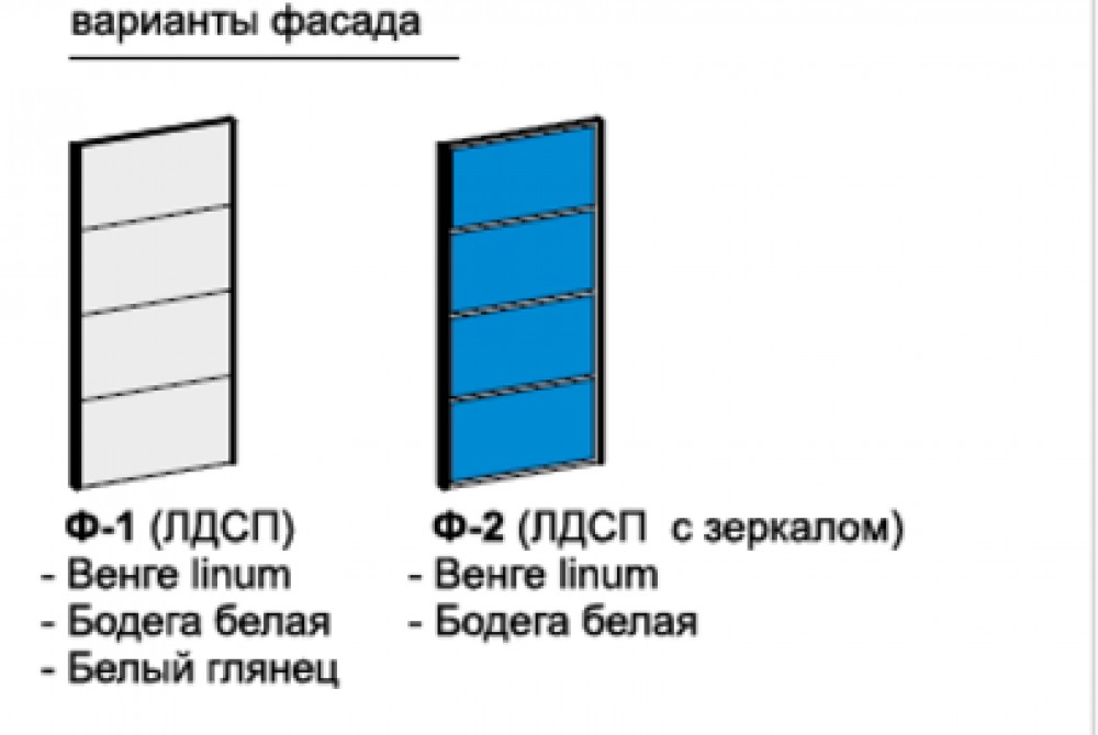 Материал: ламинированный ДСП. Центральная створка с зеркальным фасадом