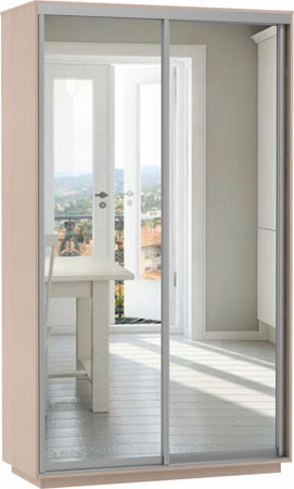 Шкаф-купе длиной 120 см. Корпус и фасад из светлой ЛДСП с древесным рисунком.