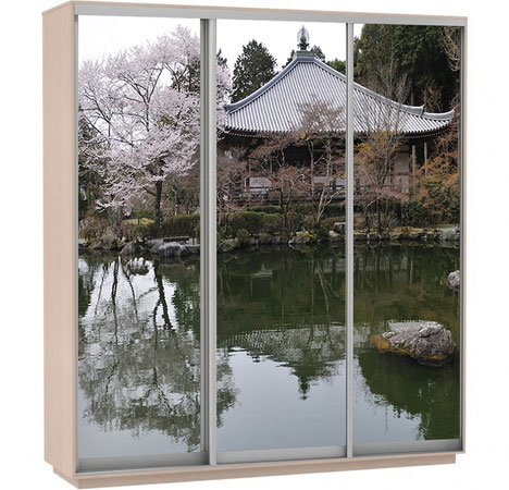 Линейный шкаф-купе с пескоструйным рисунком. Плавный механизм.