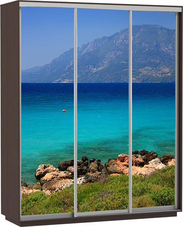 Шкаф-купе с центральным зеркалом на фасаде. Три створки на системе раздвижения Сенатор.