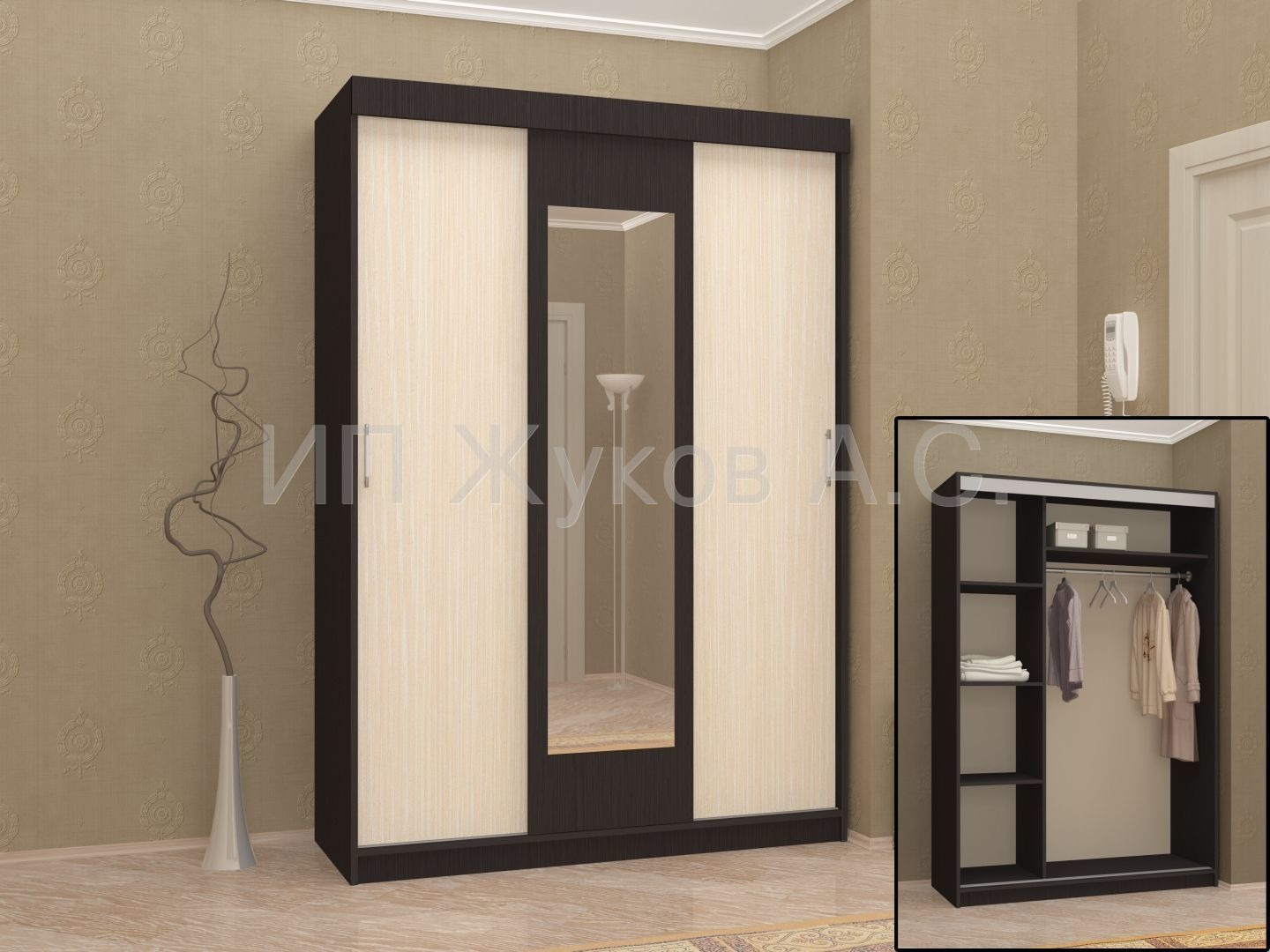 Шкаф-купе «ШК 1400 Комби-1» (дуб молочный-венге) профиль шампань