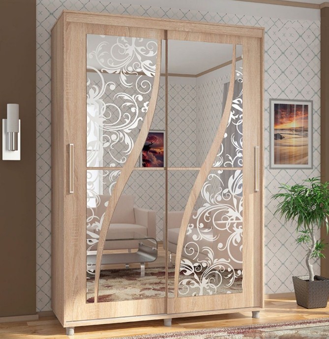 фасады - ЛДСП + зеркало с пескоструйным рисунком
