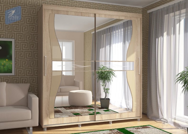 Шкаф-купе в светлых тонах и зеркальными створками подойдет для спальни и прихожей.