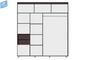 Три отсека шкафа с полками, двумя штангами, четырьмя выдвижными ящиками.
