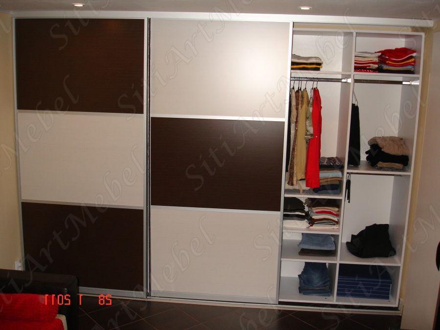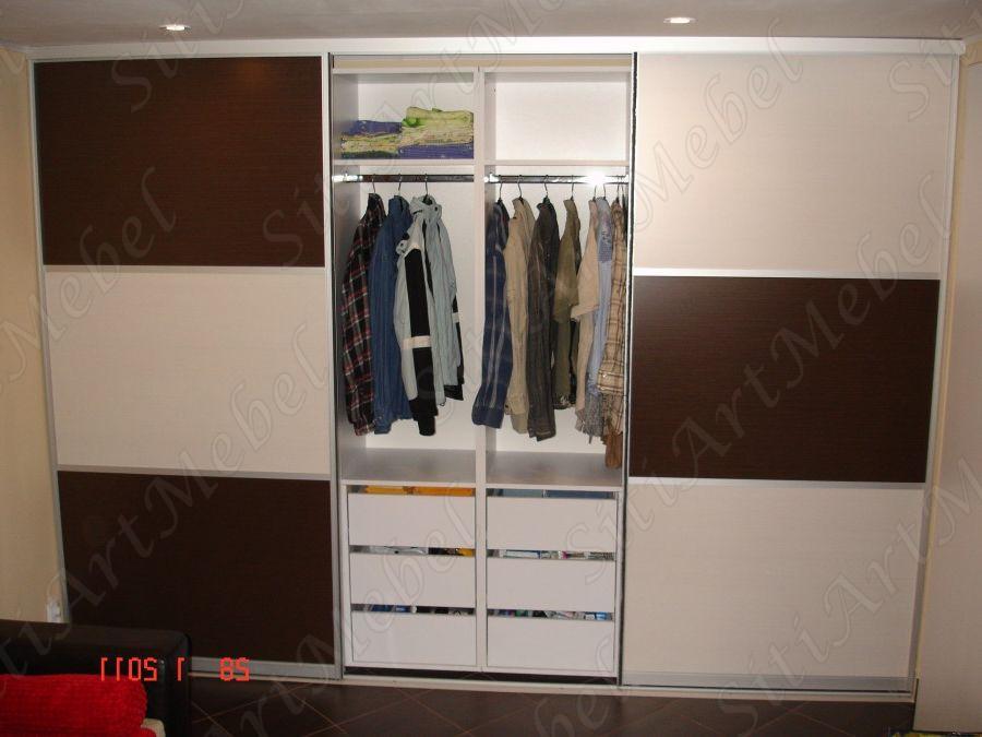 Шкаф-купе с фасадом, выполненным в стиле шахматной доски, прекрасно впишется в любой из выбранных вами интерьеров. Три раздвижные створки оснащены современной системой, позволяющей им работать практически бесшумно. За счет хорошо продуманного внутреннего наполнения встроенная модель позволит разложить всю вашу одежду.