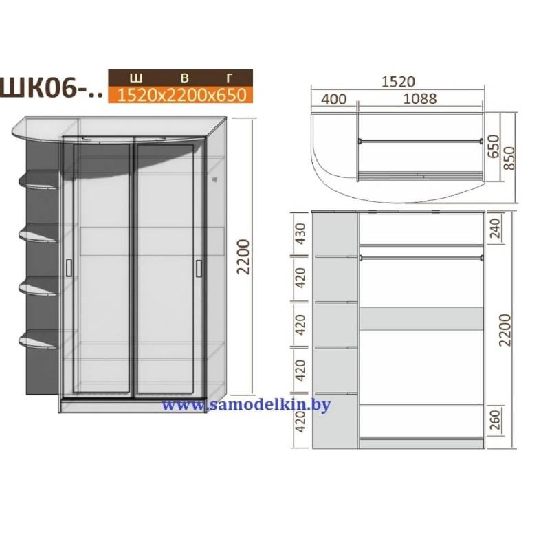 код 136900Размер: 1520x650x2200 мм. Материал: ЛДСП.