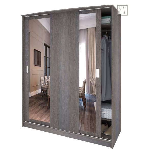 Темный корпусный шкаф-купе с двумя зеркалами в полный рост.