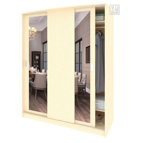 Шкаф-купе «ШК 2100» три зеркала (шимо светлый) профиль алюминий