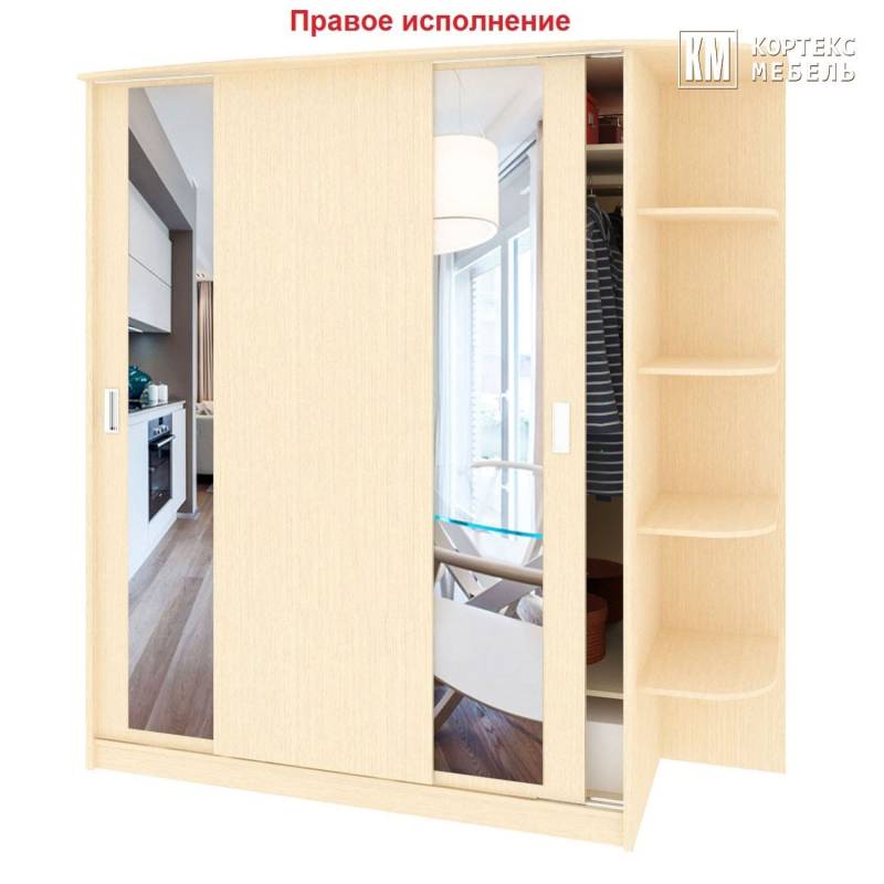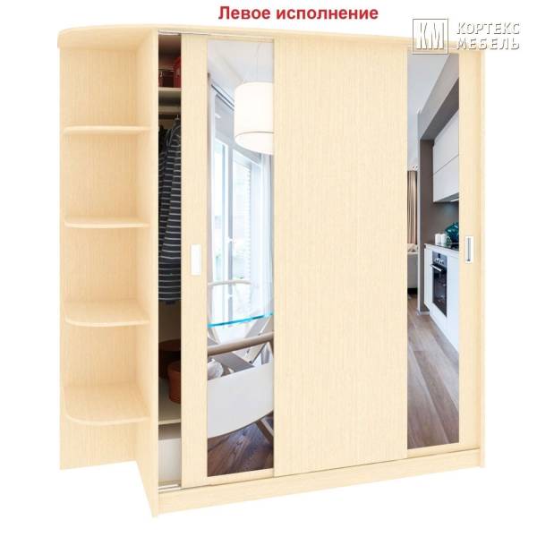Шкаф-купе двустворчатый с фигурными полками