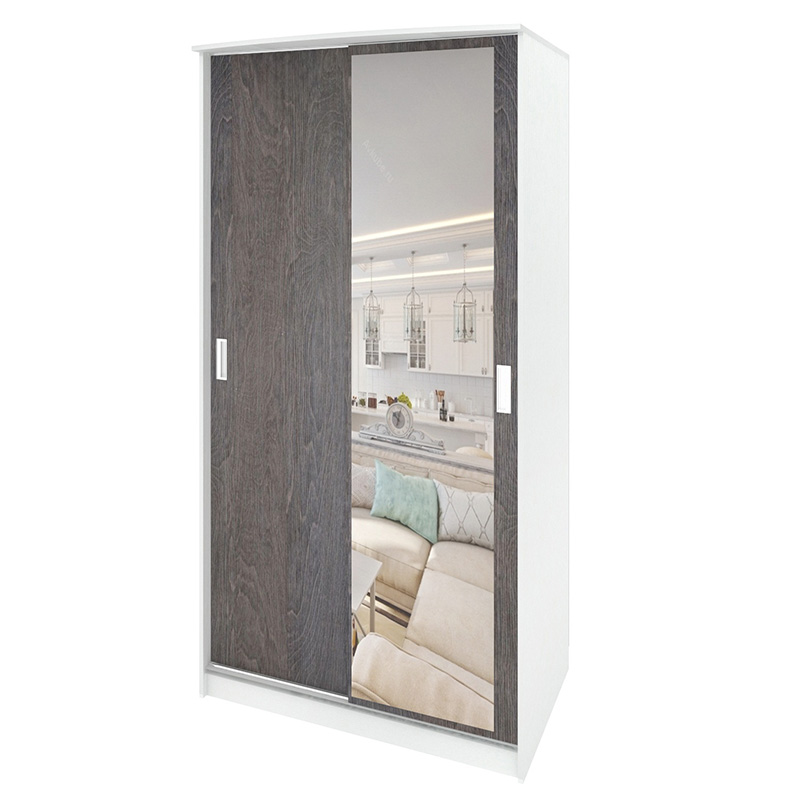код 114171Корпусный двухцветный шкаф-купе с одним зеркалом. Одно отделение внутри. Ширина 112 см.