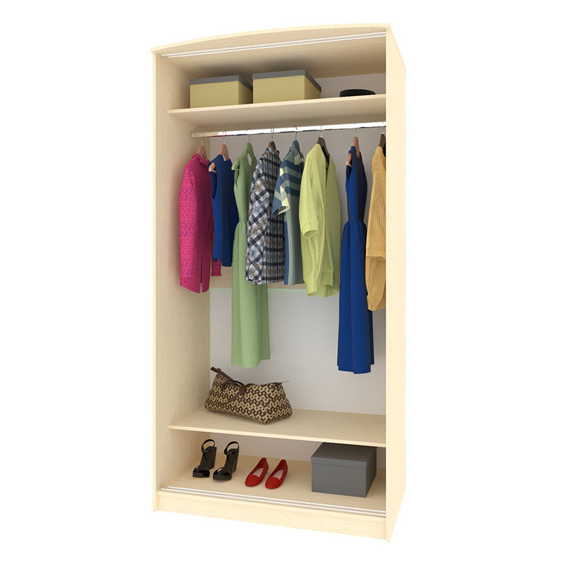 Наполнение шкафа – одно отделение со штангой для хранения одежды на плечиках, нижней полкой, антресолью.