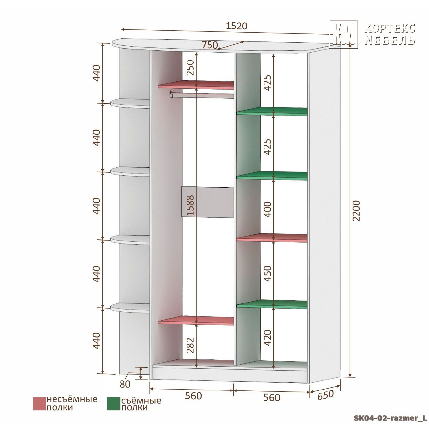 Размеры: (ШхВхГ): 1520х2200х650 мм.