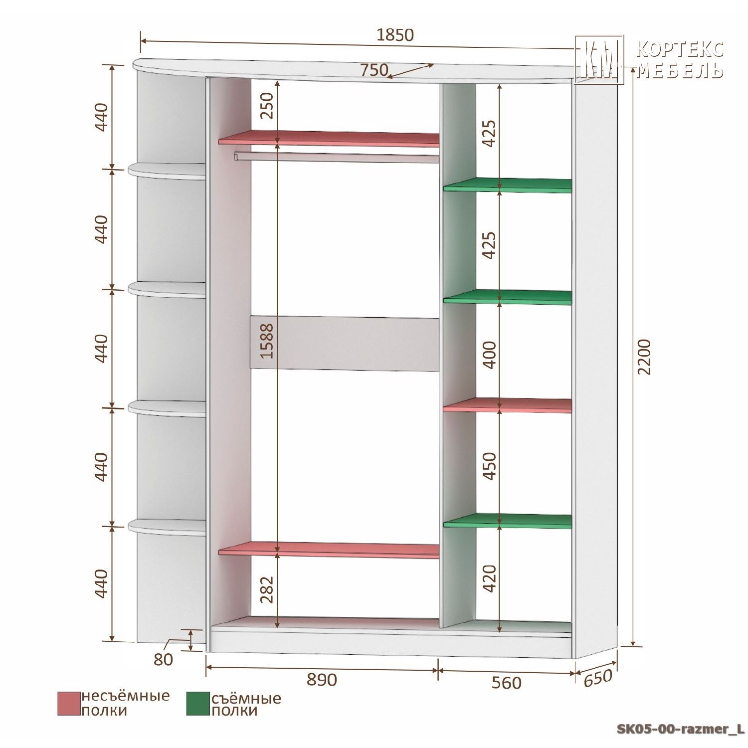 Размеры: (ШхВхГ): 1850х2200х650 мм.