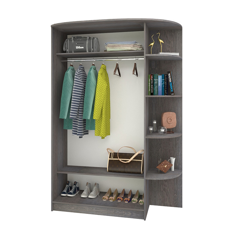 Штанги для одежды, полки, выдвижные ящики, комбинированные фасады.