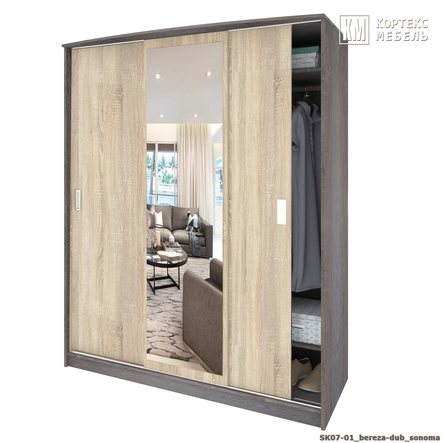 Шкаф-купе «ЭКО» 1,65 м с зеркалом (шимо светлый - шимо светлый)