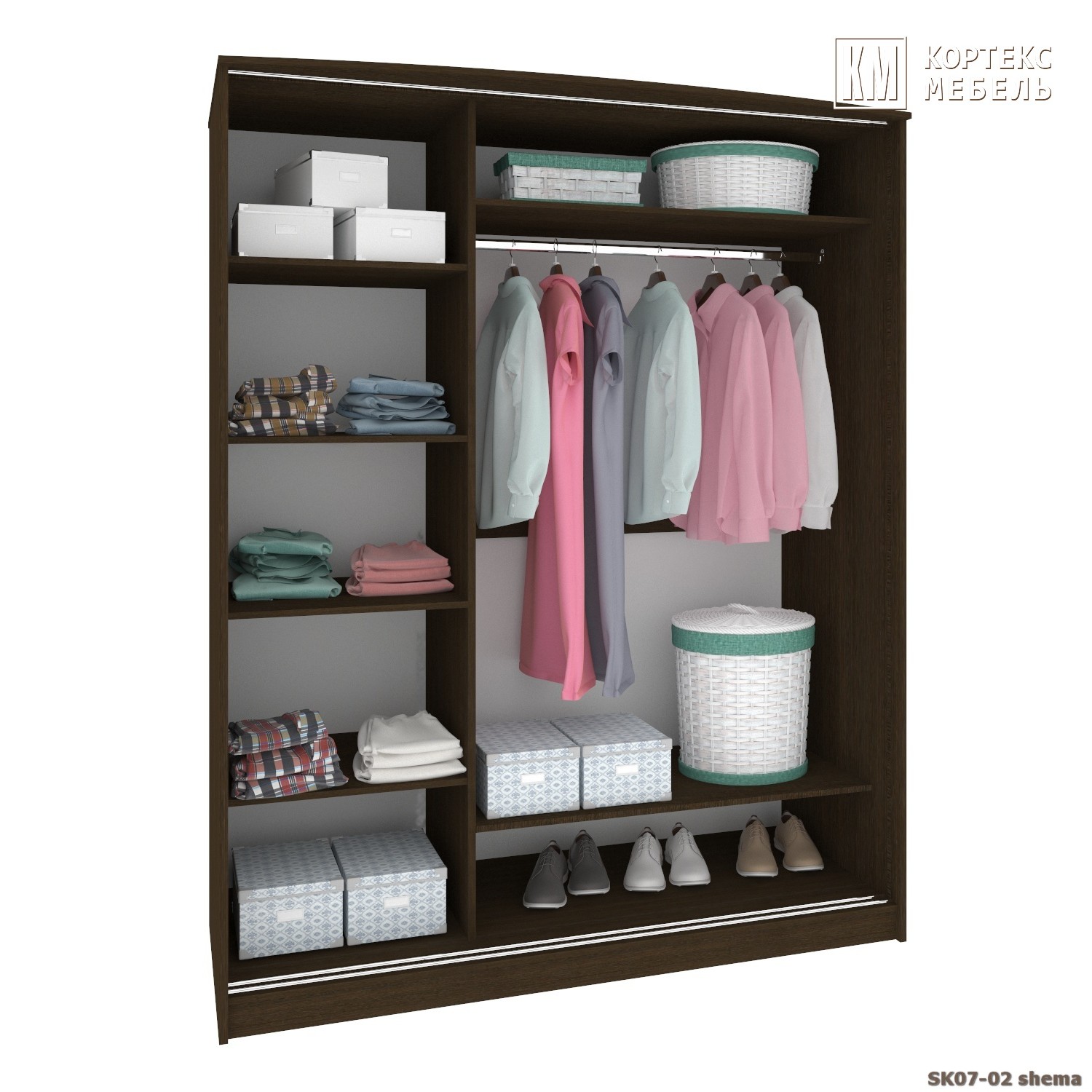 Двухдверный шкаф-купе без зеркал с полками слева. Ширина 152 см.