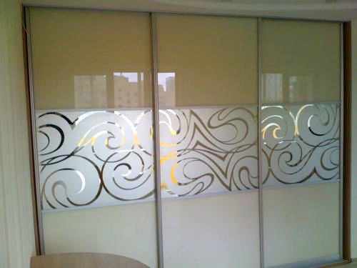 Трехдверный шкаф-купе с пескоструем и зеркалом