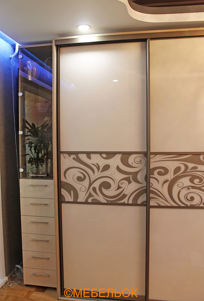 Корпус: Дсп-Еgger, Дверная группа: Лакобель с внутренним пескоструем (покрашен), Профиль: Senator.
