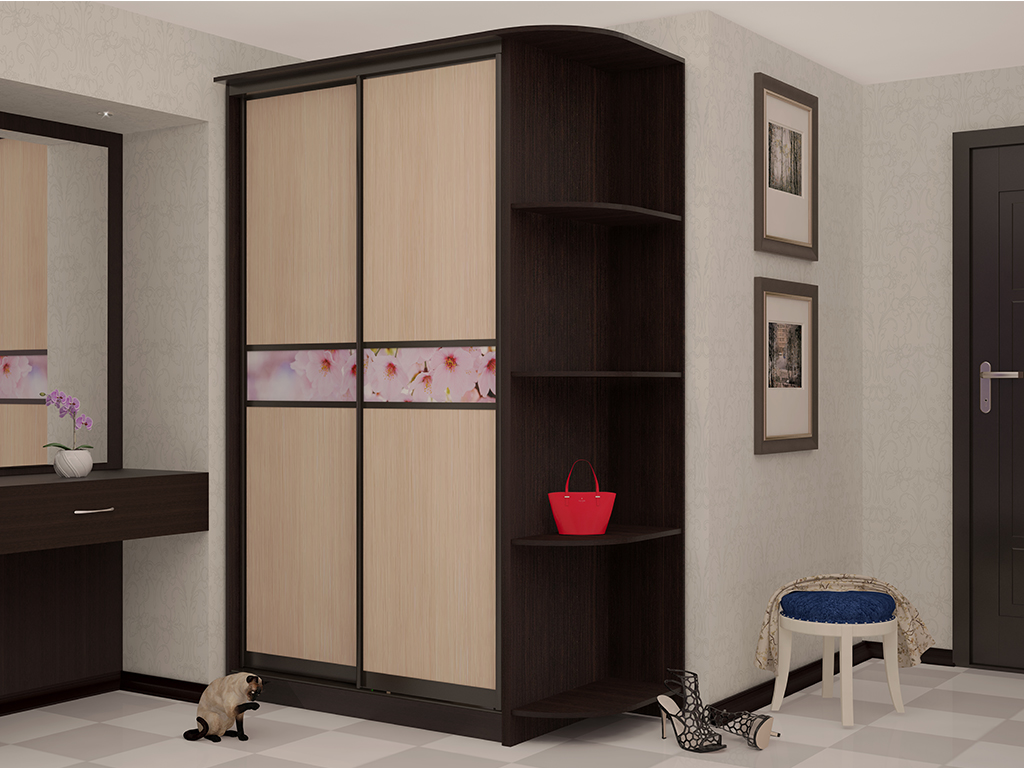 Компактный шкаф-купе станет идеальным дополнением для интерьера прихожей. Конструкция позволяет не только внести в интерьер свежих красок, но и обеспечивает комфортное хранение верхней одежды и обуви. Модель выполнена из качественных материалов высокой прочности. Боковая секция оборудована открытыми полками для мелких предметов.