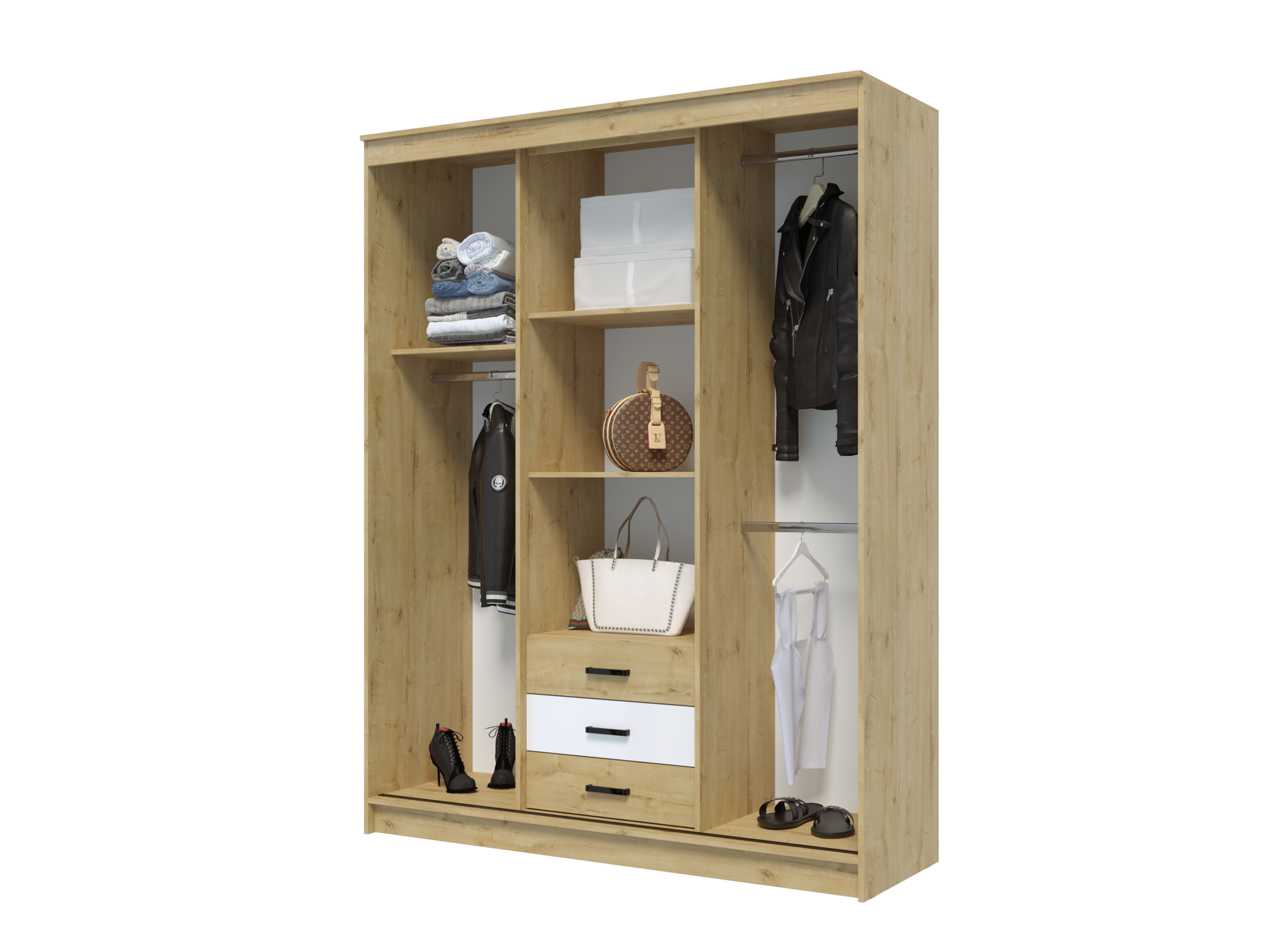 Фабричный шкаф-купе без зеркал с полками справа. Ширина 152 см.