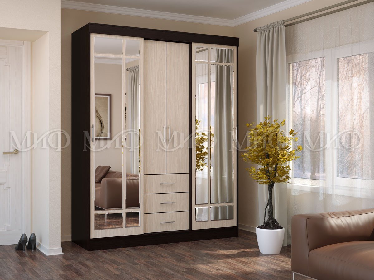 Шкаф-купе «ШК 1800 Комби-1» (шимо темный) профиль алюминий