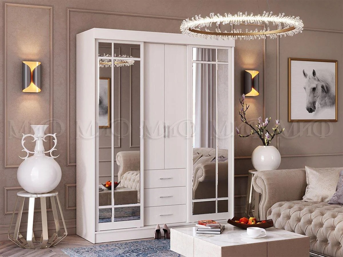 - Просторное внутреннее пространство: шкаф-купе «Маэстро» предлагает три выдвижных ящика в центральной части, что обеспечивает удобное хранение вещей. Вы сможете организовать свои вещи так, как вам удобно.