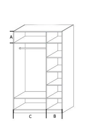 Вы можете выбрать подходящий из трёх предложенных вариантов размер шкафа: 120/230/67 см, 140/230/67 см, 160/230/67 см.