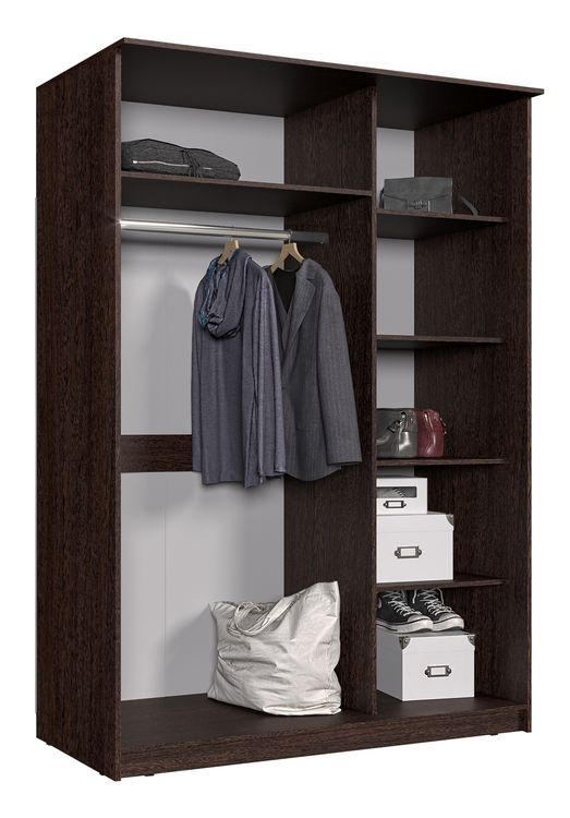 Однотонный шкаф-купе без зеркал с полками слева. Ширина 152 см.