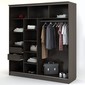 Двухцветный шкаф-купе без зеркал с полками слева. Ширина 152 см.