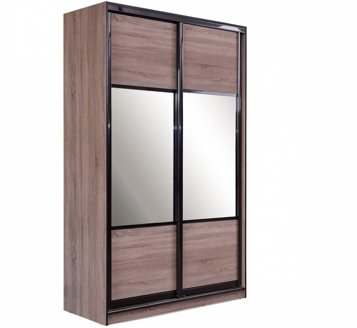 код 119402Шкаф-купе в темном декоре «дуб трюфель» имеет два зеркала на фасаде.