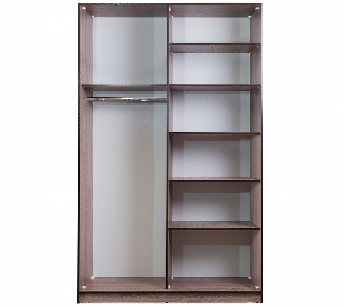 Модель узкого шкафа-купе с фасадным зеркалом. Материал – ЛДСП.