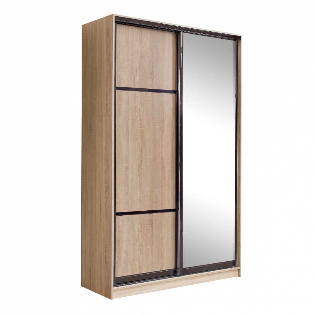 код 119433Шкаф-купе шириной 143 см имеет две секции внутри. Корпус и фасад в цвете дуба сономы.