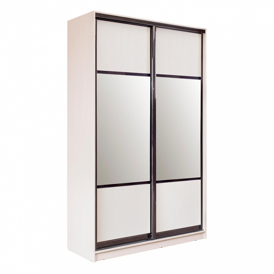 Шкаф-купе с двумя фасадными зеркалами. Сатиновый профиль из металла в цвете "жемчуг".