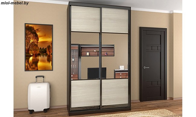 Шкаф-купе «ЭКО» 1,65 м с зеркалом (венге - дуб молочный)