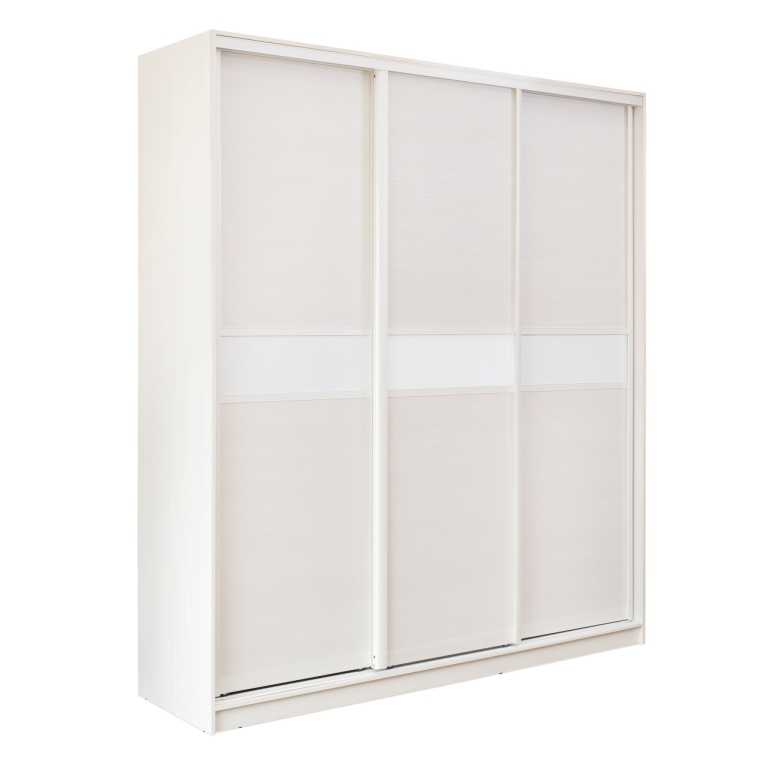 код 119645Размер: 1820x2400x600 мм. Цвет фасада – Дуб Бодега светлый. Матовые белые вставки по центру.