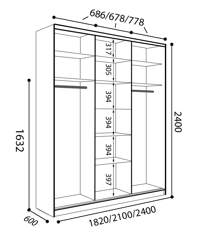 Размер: 1850x650x2200 мм. Материал: ЛДСП.