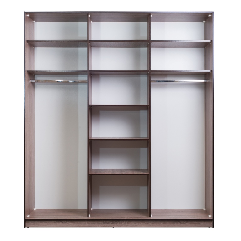 код 119623Шкаф-купе трехстворчатый с центральным зеркалом. Внутри две штанги для одежды и полки.