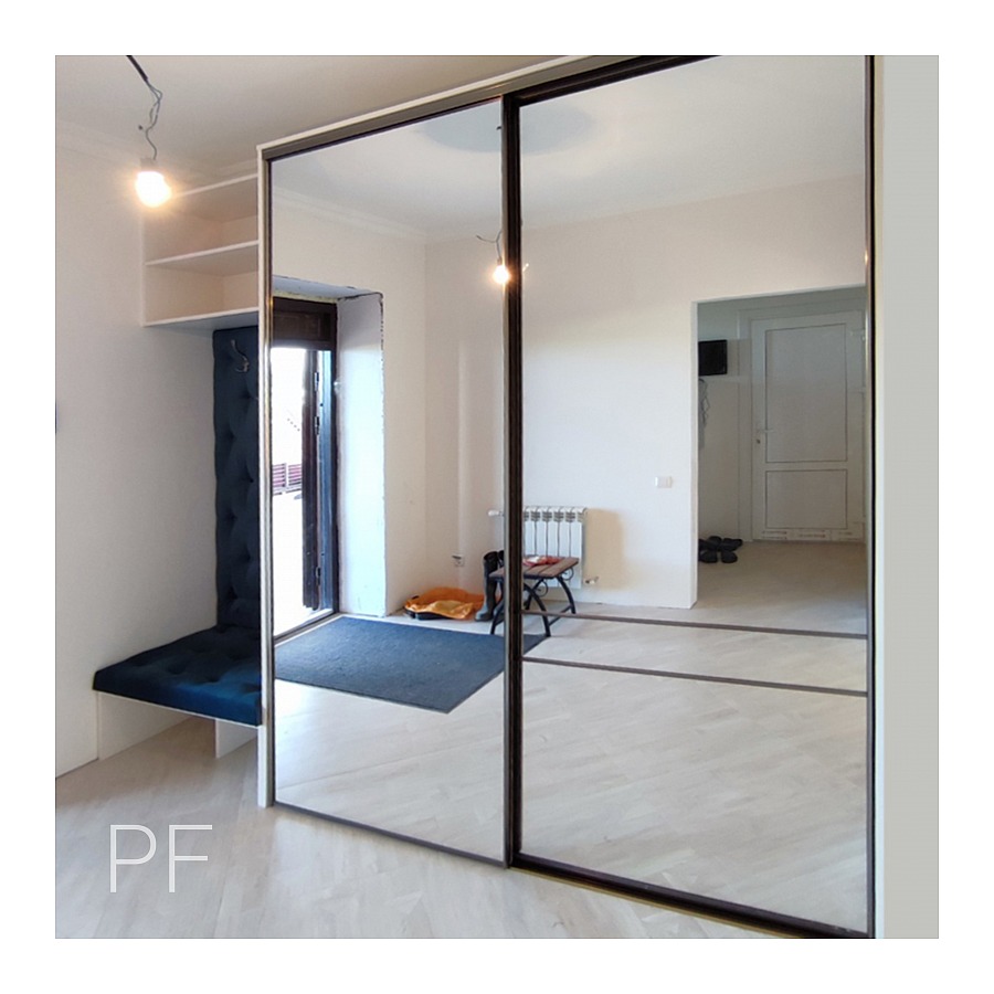 Двери для шкафа-купе: Pan Fasad ТМПрофиль Modus 161, цвет Шампань браш. Наполнение – Зеркало Серебро.
